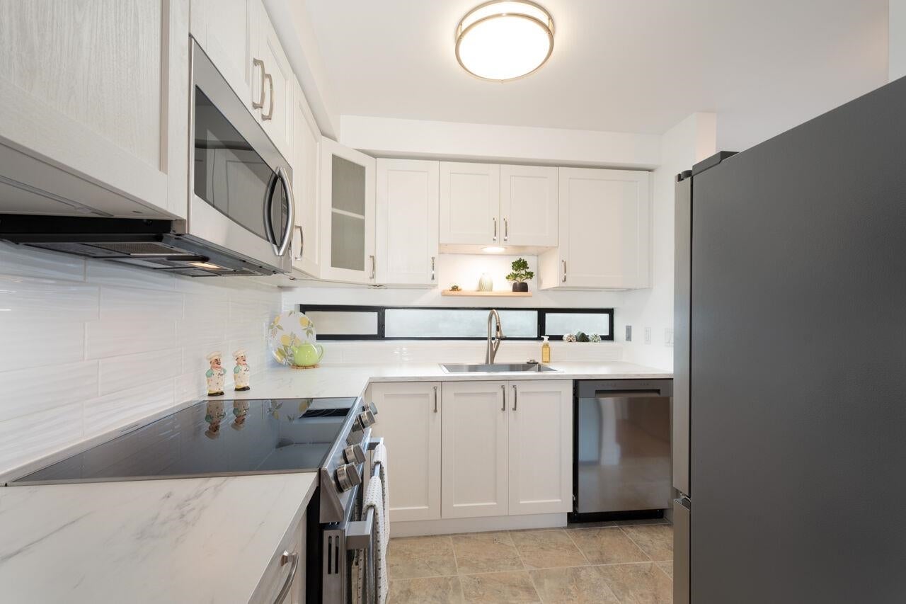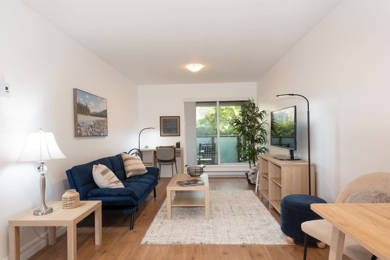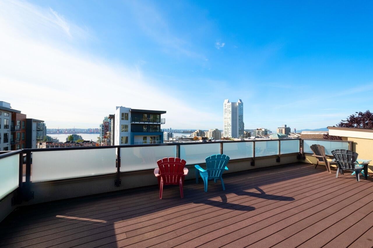 Step into style with this stunning, fully renovated 1-bedroom gem in the heart of vibrant Lower Lonsdale! Featuring a sleek new kitchen, stainless steel appliances, modern laminate floors, fresh designer paint, and more. The spacious bedroom fits a king bed—no compromises here. The open-concept design is perfect for hosting or working from home. This standout building has major upgrades: rainscreen, new windows, balconies, roof, piping, and parking membrane—all overseen by a proactive strata. Enjoy sunset cocktails on the rooftop deck with jaw-dropping views of the ocean, city skyline, Stanley Park, Lions Gate Bridge, even West Van. Pets and rentals allowed. Just steps to the SeaBus, Shipyards, breweries, cafés, fitness studios, and the oceanfront. 4th St is the main bike pathway.
